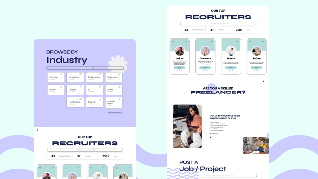 This website design combines modern minimalism with vibrant, approachable aesthetics, transforming the traditional “business concept” into something more playful and youthful, rather than overly serious. Featuring a soft pastel color palette of pink, blue, and red, the design incorporates bold typography for headlines and clean sans-serif fonts for readability. Sleek, simple icons and illustrative graphics add a playful yet professional touch. The use of card-style layouts for features and software mockups enhances clarity, while subtle decorative elements add visual interest without causing distraction, resulting in an engaging and user-friendly interface.
